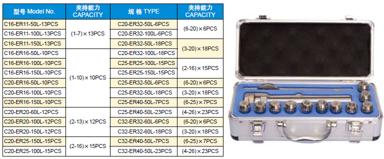 直柄套裝ER銑夾頭
